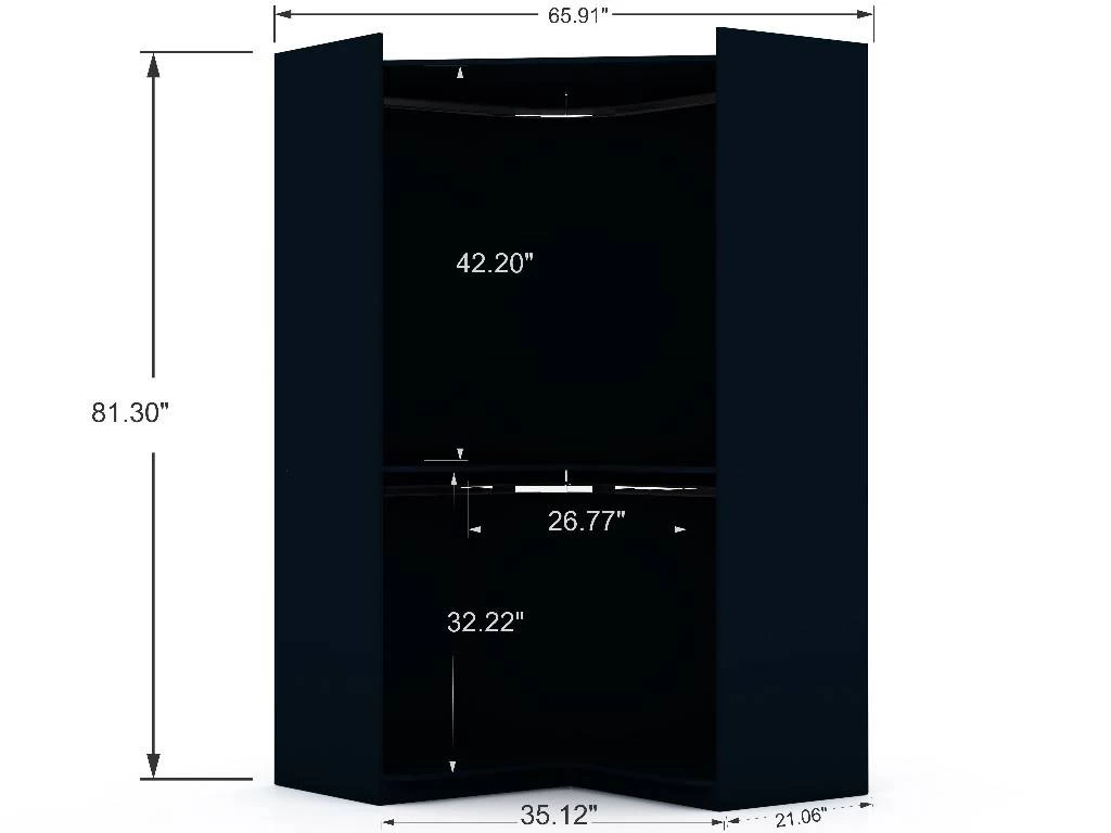 Upgrade your closet and give your space a makeover with the 2-Piece Mulberry corner wardrobe, a piece that offers extra room for tucking away your things and looks even better while doing it. With rounded hanging rods and open shelving, clean lines, and understated design, this piece goes well with any existing and is the perfect wardrobe solution for all your extra things. Set it in a corner of the where it blends seamlessly into your master suite and you’ll never lose sight of your favorite pieces. The side Mulberry wardrobe is shelving done right with open space for keeping your favorite clothing items organized and easily accessible. A pair of drawers tuck away personal items and a larger upper shelf is perfect for displaying accessories, hand luggage, or hats. The solution for extra space has arrived and it’s seamless design blends well with any existing decor to keep your room looking as good as it is functional. Great in a smaller or larger space for acting as a shelving and closet unit without overtaking a space. Option to pair with additional wardrobe modules to maximize your space and storage/ wardrobe needs.