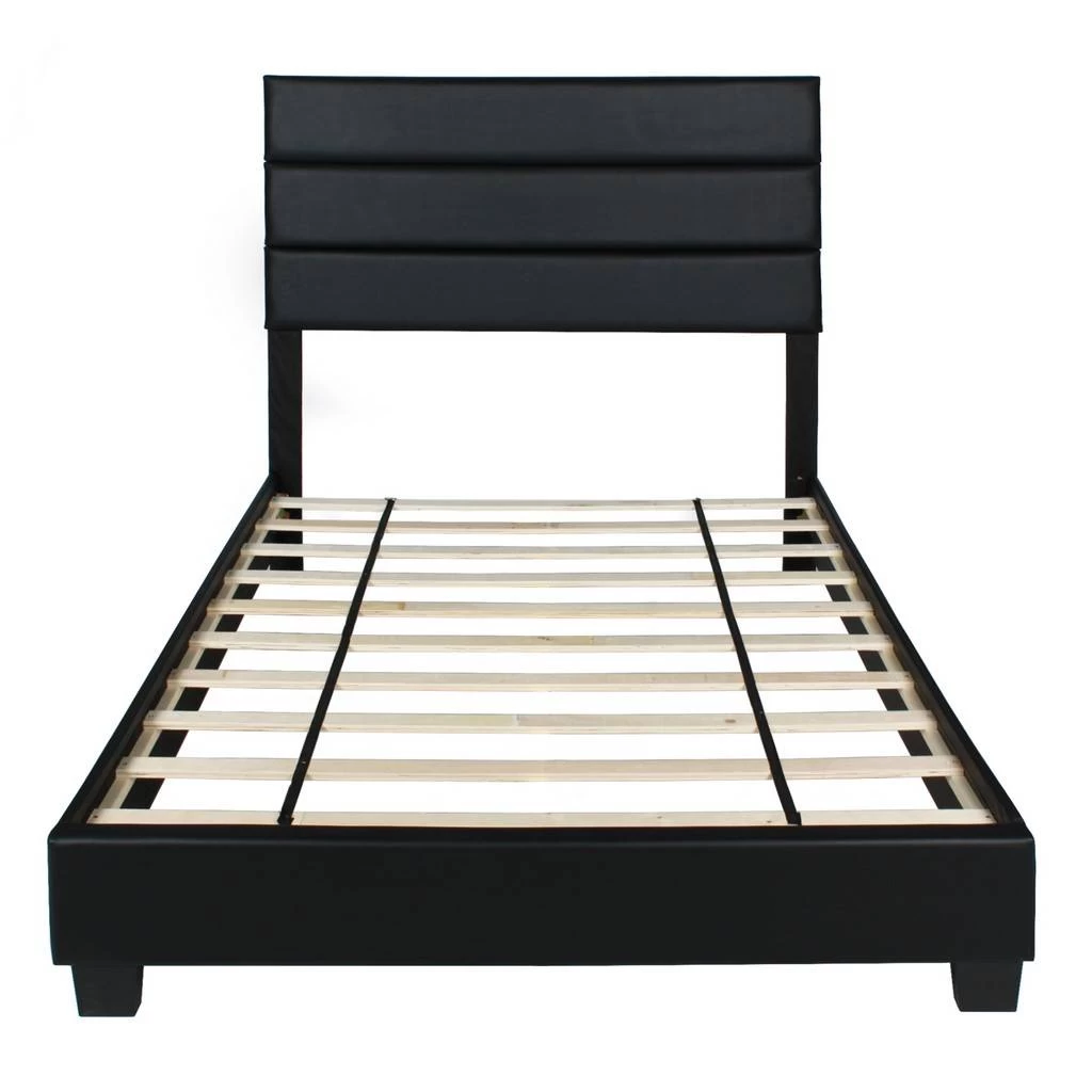 Bold and modern style comes front and center with the Better Home Products Napoli Faux Leather Upholstered Platform Bed Frame. Crafted from luxe vegan leather upholstery and sturdy wooden framework the bed is sure to make a luxurious statement. With a distinct tri-panel design headboard and 4″ of clearance space from the floor to the bottom of the side rail, this bed frame provides a modern low-profile. Dependable wood slats support your memory foam, latex or spring mattress with no need for a box spring. Available in Twin, Full and Queen size and choice of Black, Gray, White and Tobacco color finish. Ships in one box. Assembly required.