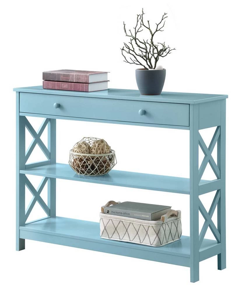 Oxford 1 Drawer Console Table with Shelves in Sea Foam Blue – Convenience Concepts 203295SF