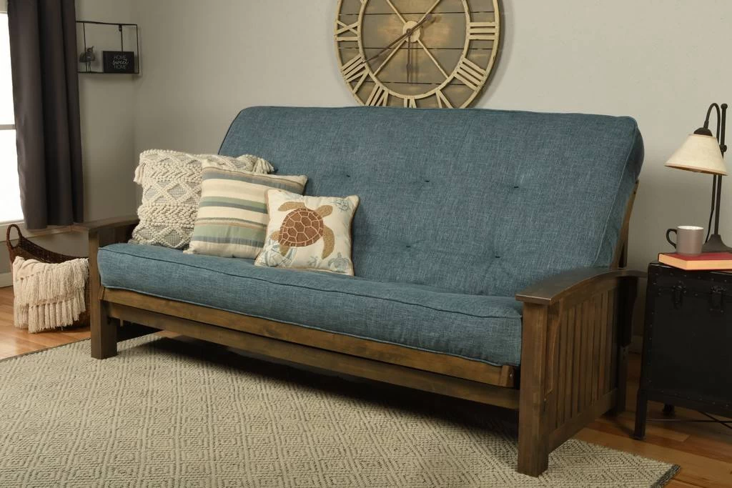 Designed with your comfort in mind, this is one of the widest solid wood futons available — extending almost 7-feet! Feel free to stretch out and relax on this futon and invite family or friends overnight without worrying about sleeping accommodations. If not using as a bed, this futon has two positions allowing you to sit or lounge and the slatted arms have a gentle curve to fit your body. The mattress offers hinged coil innersprings, covered with high density foam, and finished with decorative, tufted upholstery for softness and moldability allowing the mattress to rest in the perfect position every time.