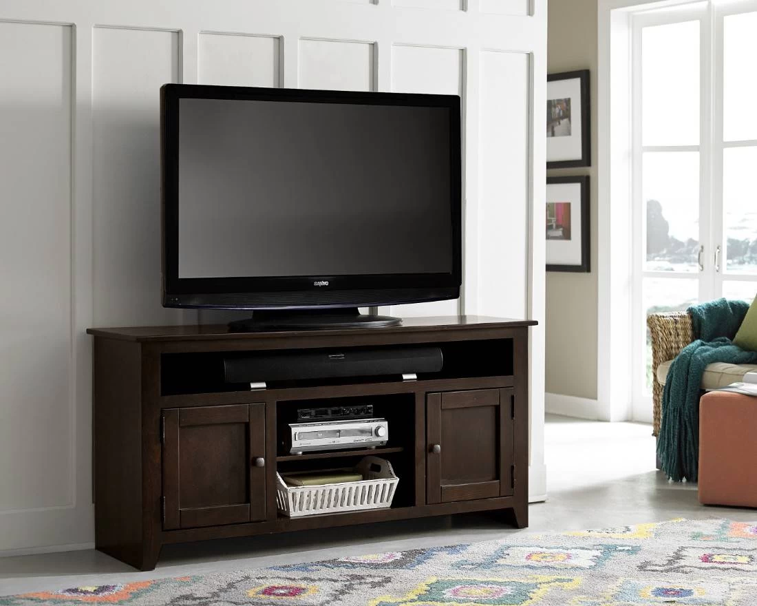 This unit provides media storage while maintaining an attractive design for just about any room. The simple styling will be appealing for many years to come. Hand applied multi-step finish, hardware consists of a gunmetal square knob, case design features a tapered leg and simplistic styling. Wooden door, adjustable shelving, grommets for wire management. Will accommodate most sound bars.