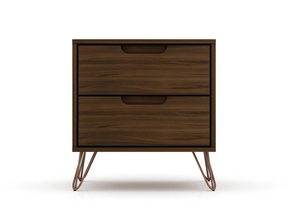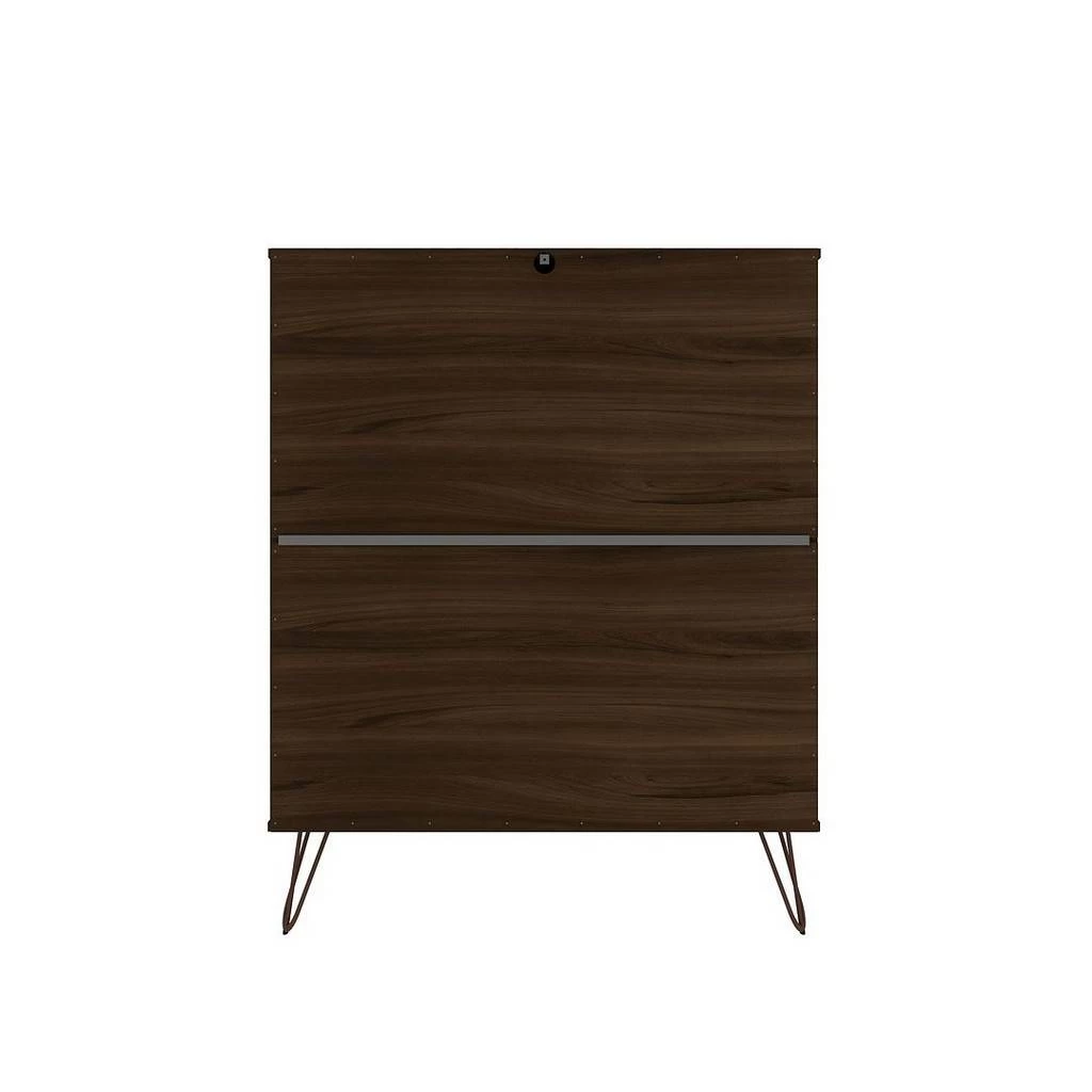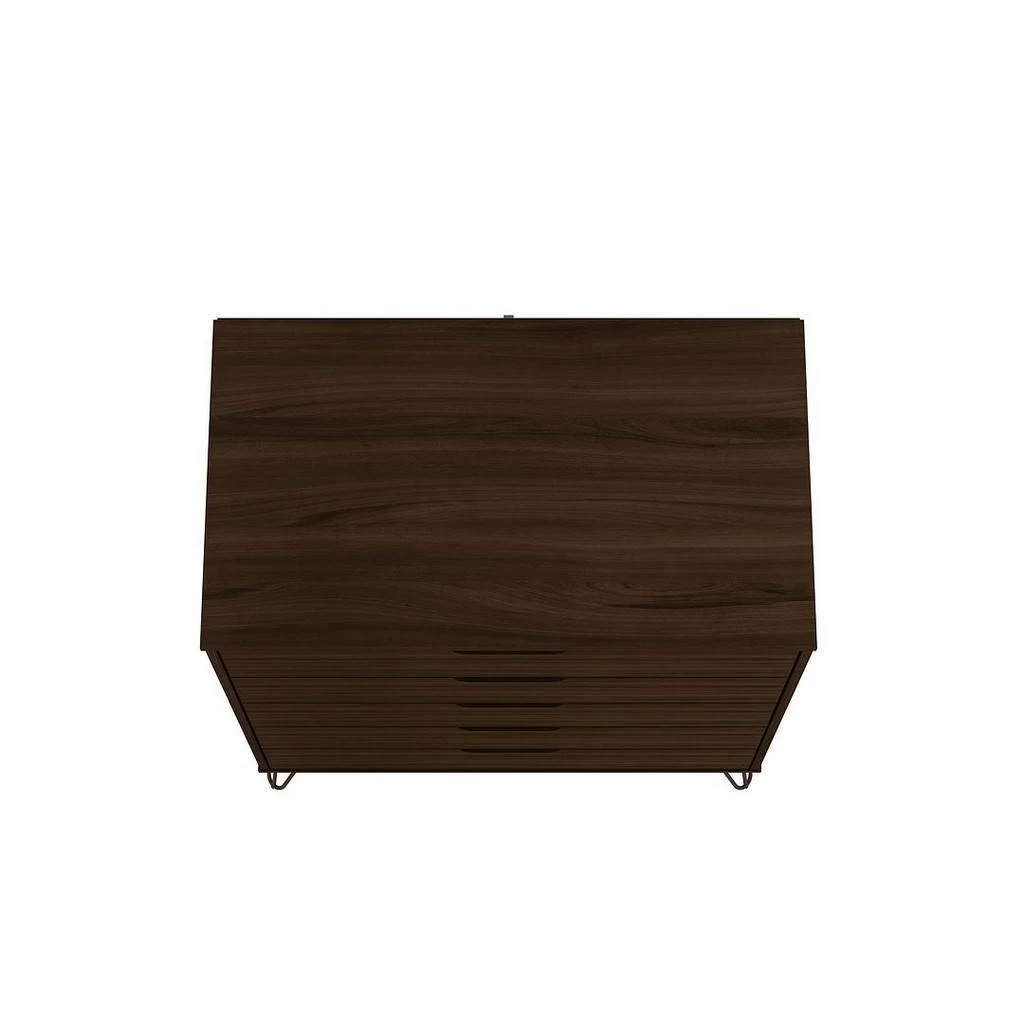 The Rockefeller dresser is the perfect accompaniment to any space, with ample storage and minimalistic Mid-century modern style. Cutout handles keep the piece feeling fresh with five drawers made easy for stowing away clothing, personal items, and beyond. A display top allows for sharing favorite framed family photos, travel trinkets, perfume trays, or a decorative lamp. Set it under a mirror or painting to complete your space with this instant bedroom focal point.