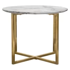 Vida 24″ Round End Table W/ Faux Marble Top And Brushed Gold Metal Frame – Diamond Sofa VIDAETMA