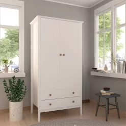 Crown Full Wardrobe With Hanging And 2 Drawers In White – Manhattan Comfort 167GMC1