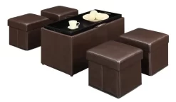 Manhattan Storage Bench W/ 4 Collapsible Ottomans In Espresso Finish – Convenience Concepts 143008