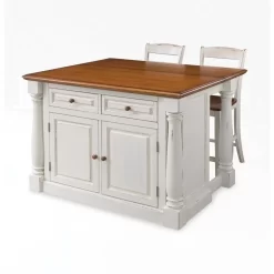Monarch Antiqued White Kitchen Island And Two Stools – Homestyles Furniture 5020-948