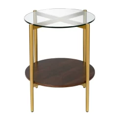 Otto Brass Finish Side Table With Walnut Shelf – Hudson & Canal ST0275