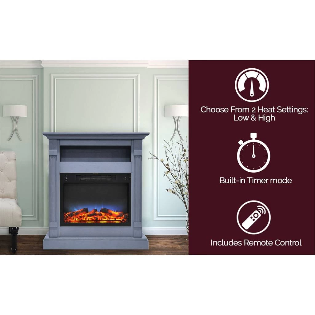 The Sienna electric fireplace offers the perfect blend of style and functionality to any room it’s placed in. Its slim frame is made out of a sturdy MDF material that is available in eight stunning finishes. The clean lines, fluted pilasters, and crown molding are a few of the design details that add character to the frame. The electric LED insert produces 5,115 BTUs of fan-forced heat that can quickly warm a 210 sq. ft. room. An elegant, multi-color flame display dances across the back of the firebox, creating movement that is sure to catch your eye. Embers of light glaze across the logs within, adding highlights throughout the charred log display. The brightness, flame color, and heat settings can be adjusted with a simple push of a button. During the warmer months, you can set the flames to display without heat – making it perfect to use all year long.
