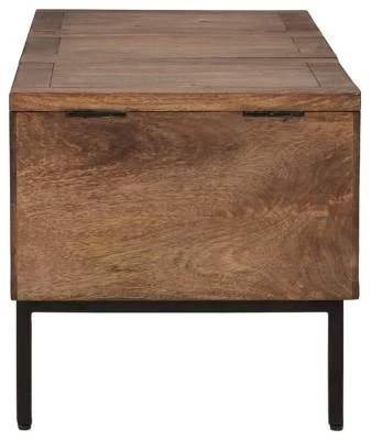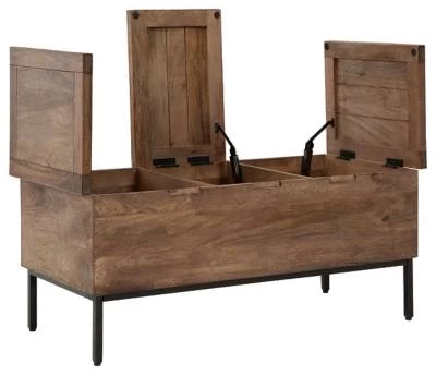 Unlock a quaint touch of casual style and convenience in your living area with the Braddick storage trunk. This vintage-inspired trunk is the ideal accent piece for your urban oasis, modern farmhouse or contemporary cottage. Metal legs and 3 storage compartments with hinged tops add style and functionality to keep your space organized and clutter free.