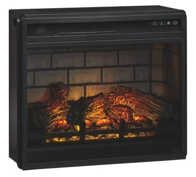 Enjoy the cozy feel of a cracklin’ fireplace without the hassle, maintenance or cleanup. Available as an addition on select TV stands and entertainment centers, this fireplace insert with faux firebrick surround operates with or without infrared heat and includes a multi flame feature, 7-level temperature setting, five brightness levels and LED glowing embers effect.