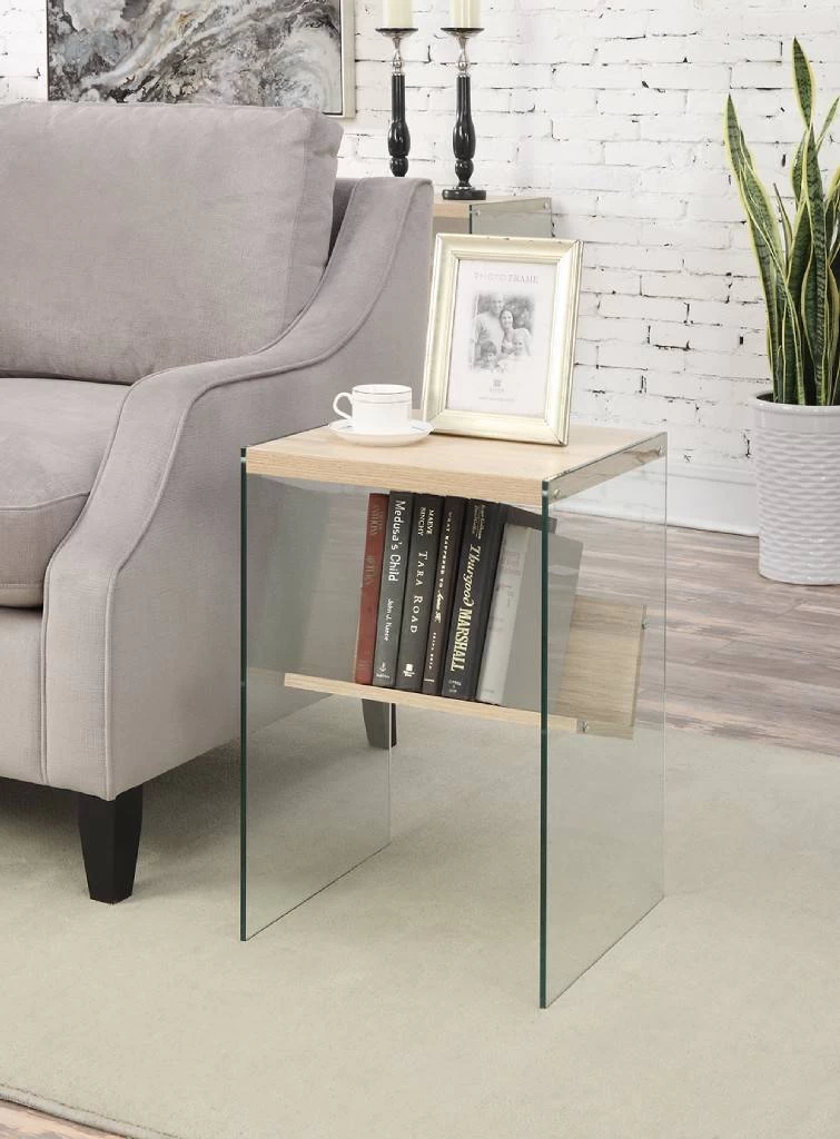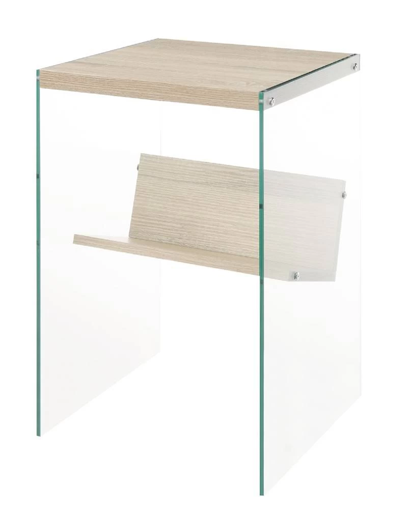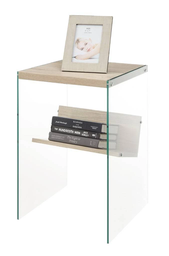 Keep your essentials close with the SoHo End Table with Shelf by Convenience Concepts. The minimalistic modern design is ideal for upgrading any living space in style. This piece is constructed with tempered glass sides and a sturdy surface top perfect for holding your remotes, electronics, and current reading material. The clear glass sides ensure magazines or books that are stored on the lower shelf are sure to be featured pieces in your room of choice. Each tier of shelving is built from particleboard, hollow core, and melamine. Shop additional contemporary pieces from the Soho collection by Convenience Concepts, each sold separately.