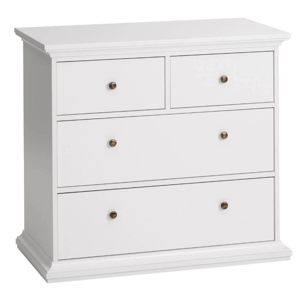 Sonoma 4 drawer chest offers space saving alternative that can hold a variety of items in its wide drawers, from guest linens to daily entryway necessities. The unique depth makes this piece an ideal addition to bedrooms, Living areas, or entryways. Standing strong with metal drawer liners and an easy to clean Foil surface the Sonoma dresser will be a productive and durable piece in your Collection.
