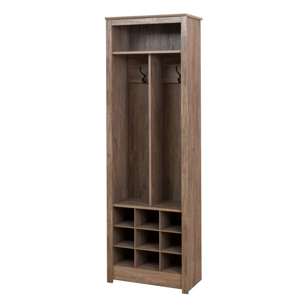 Customize your entryway, hallway or workspace with this versatile organizer. Fit one organizer in a narrow apartment hallway or combine multiple pieces in a large foyer to create a custom look at a fraction of the cost. This Entryway Organizer features two double coat hooks and one large upper shelf, which provides an ideal place to store jackets, hats, gloves, mail, car keys and any other entryway clutter. This unit also features 9 lower shoe cubbies that measure 7 in. W x 5.25 in. H X 11.75 in. D. Manufactured in Canada from non-toxic, laminated composite woods and meets all North American safety standards. Ships ready-to-assemble, includes an instruction booklet for easy assembly and has a 5-year manufacturer’s limited warranty.