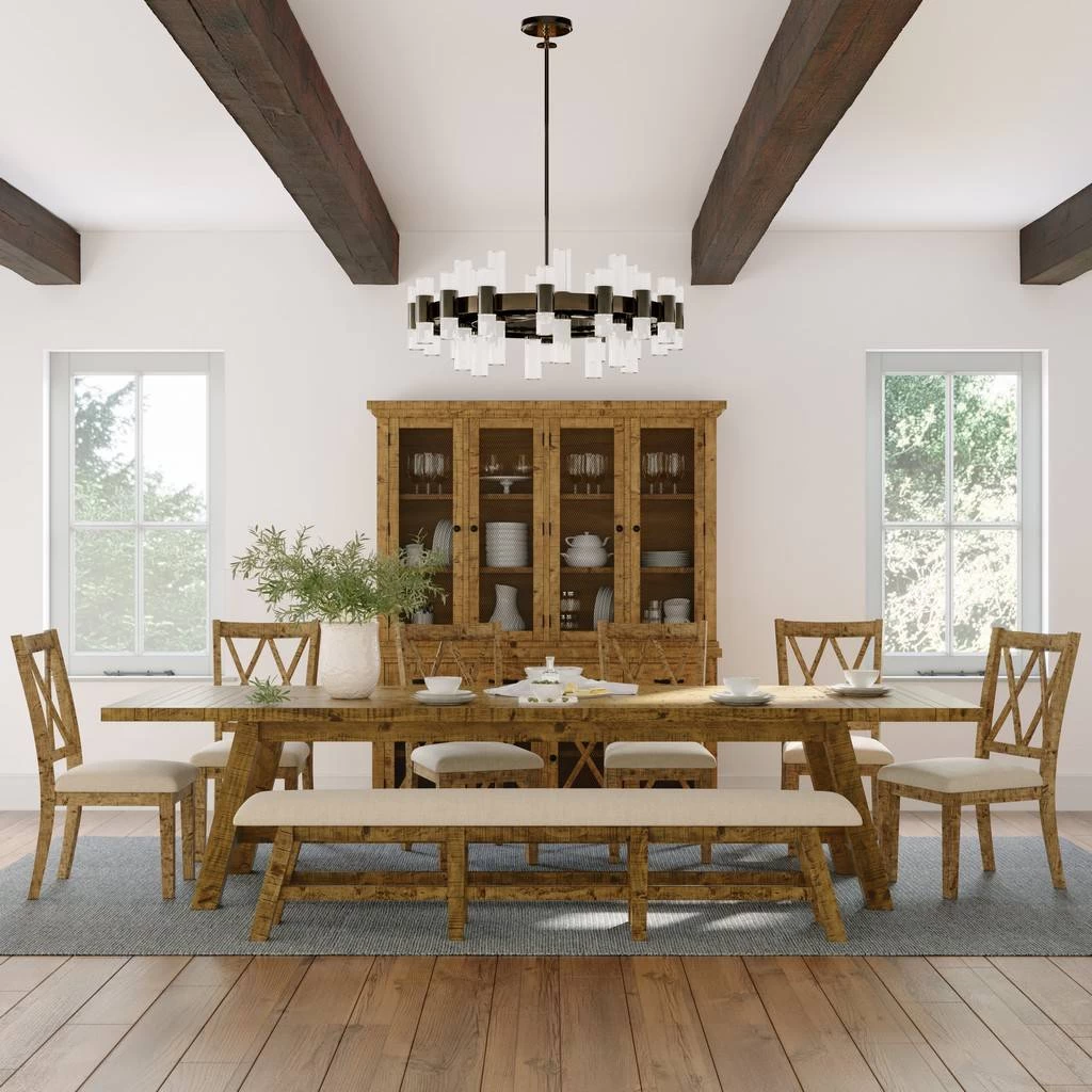The Telluride Collection is the essence of rustic country style with distressed solid pine handcrafted into spectacular furniture perfect for any room in your home. Each piece is unique with subtle distressing that brings out the full grain beauty of the natural wood. This eye-catching dining bench is ready to be part of your home. Soft padding covers a frame of solid distressed pine, with a neutral color palette that looks amazing paired with our Telluride dining collection, or to freshen up an existing dining room or entryway. Measuring 85 inches wide, our versatile bench is a must for your everyday entertaining or dining needs.