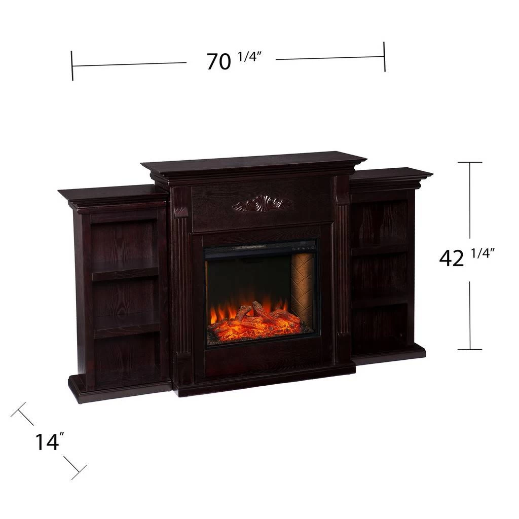 Turn up the heat on smart home style with this Alexa-enabled electric fireplace. Classic woodwork flourishes across the mantel and pilasters, lining up a traditional fireplace look. Optional bookcases shelve your reading lists, décor, and family photos, while the mantel houses floral arrangements and your memento collection. Glowing faux fire logs add ambiance with flickering LED flames and lifelike embers,with or without heat. Voice-enabled technology allows for seamless control from anywhere in the room. This smart electric fireplace warms your hearth, from the to the home office.