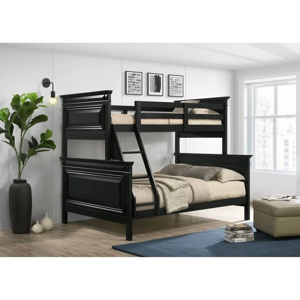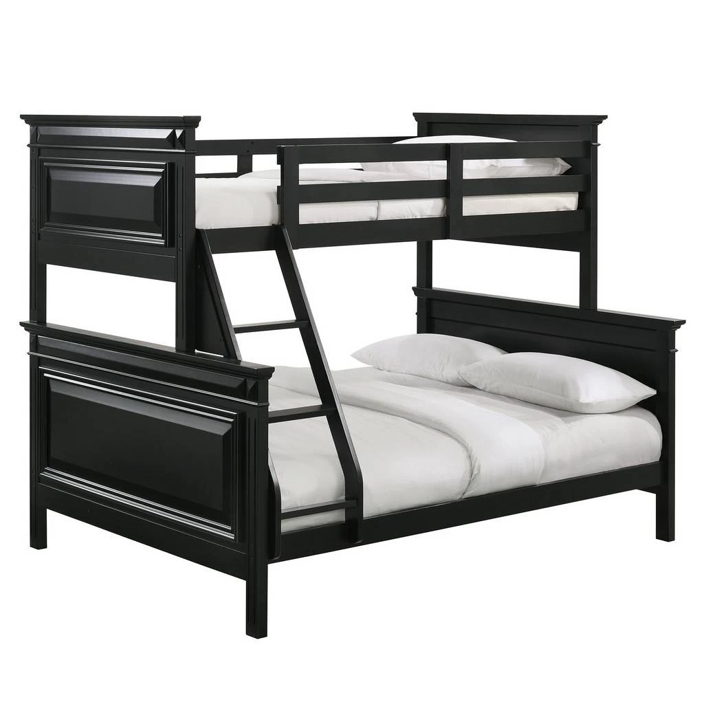 The Picket House Furnishings Twin over Full Bunk Bed is the perfect pick for your little ones. Crafted of acacia wood, metal, and mdf. Includes a built-in ladder and guard rails to keep your little ones safe. Finished in a rich black color, making it versatile for most kid rooms. No box spring required and full assembly required.