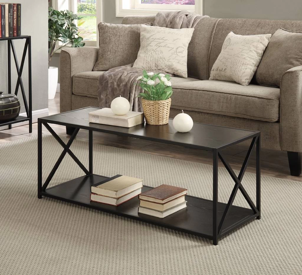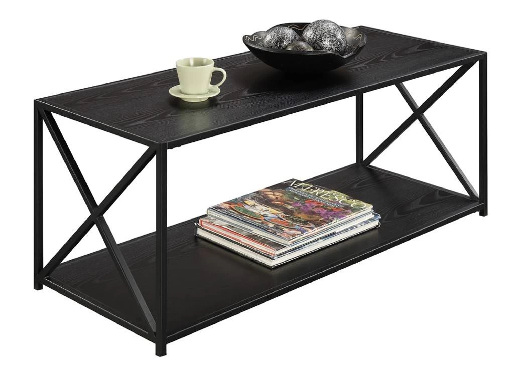 The Tucson Coffee Table with Shelf by Convenience Concepts will make a great addition to any modern home. Available in multiple finishes, this table is sure to complement any home . Featuring a spacious top and bottom shelf, providing easy access to plenty of space to display collectibles and everyday necessities. Engineered for a long-time use, this beautiful contemporary piece is built from particleboard, sturdy powder-coated metal, and melamine veneer. This table is sure to make a statement no matter where it is displayed in your home! Coordinate your favorite room with additional pieces from the Tucson collection by Convenience Concepts, each sold separately.