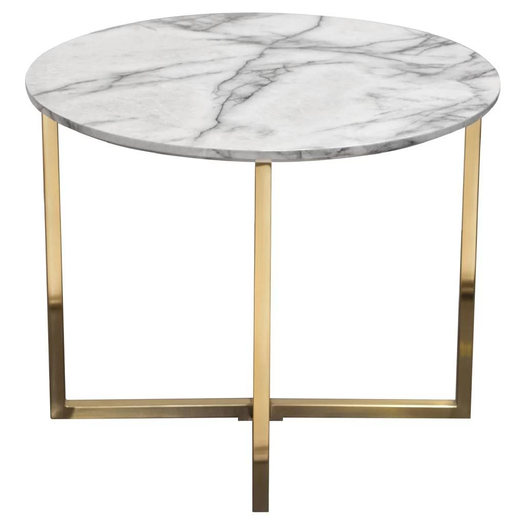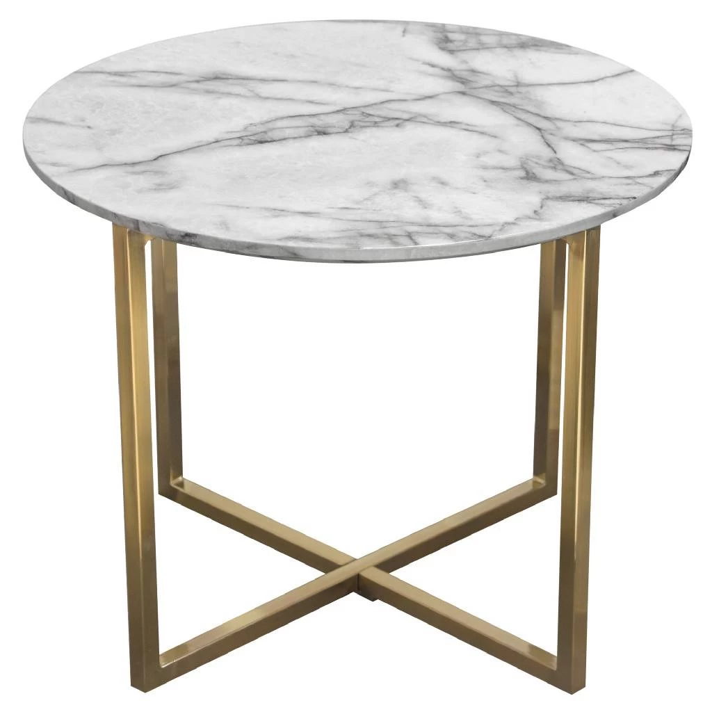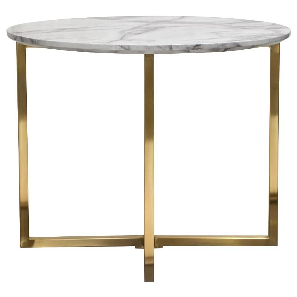 Vida 24″ Round End Table w/ Faux Marble Top & Brushed Gold Metal Frame – Diamond Sofa VIDAETMA