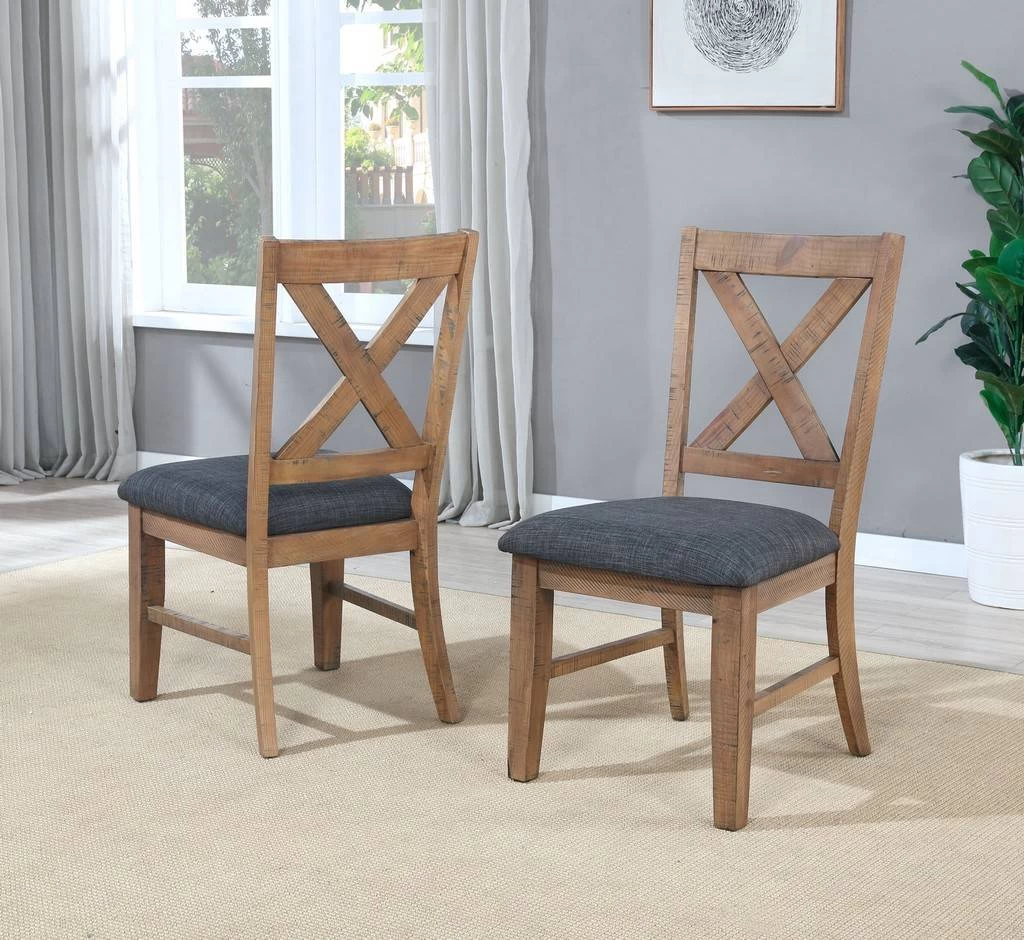 Adding comfort and style to any dining table, the Granada Dining Chairs offer timeless appeal. Finely crafted from solid New Zealand pine wearing a natural Oak finish, these handsome chairs feel classic yet current. Design details include an eye-catching X-back design and cushioned, upholstered seats finished in Gray linen.