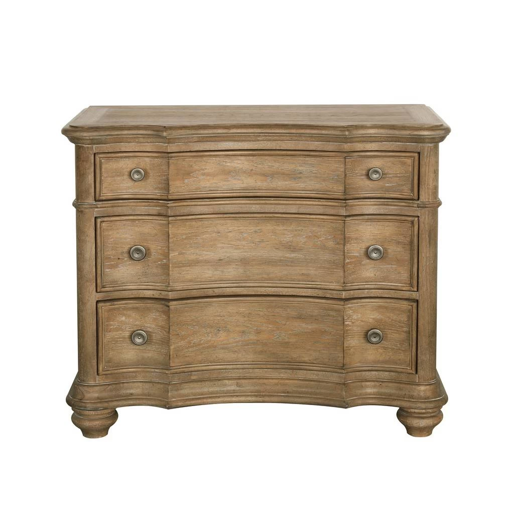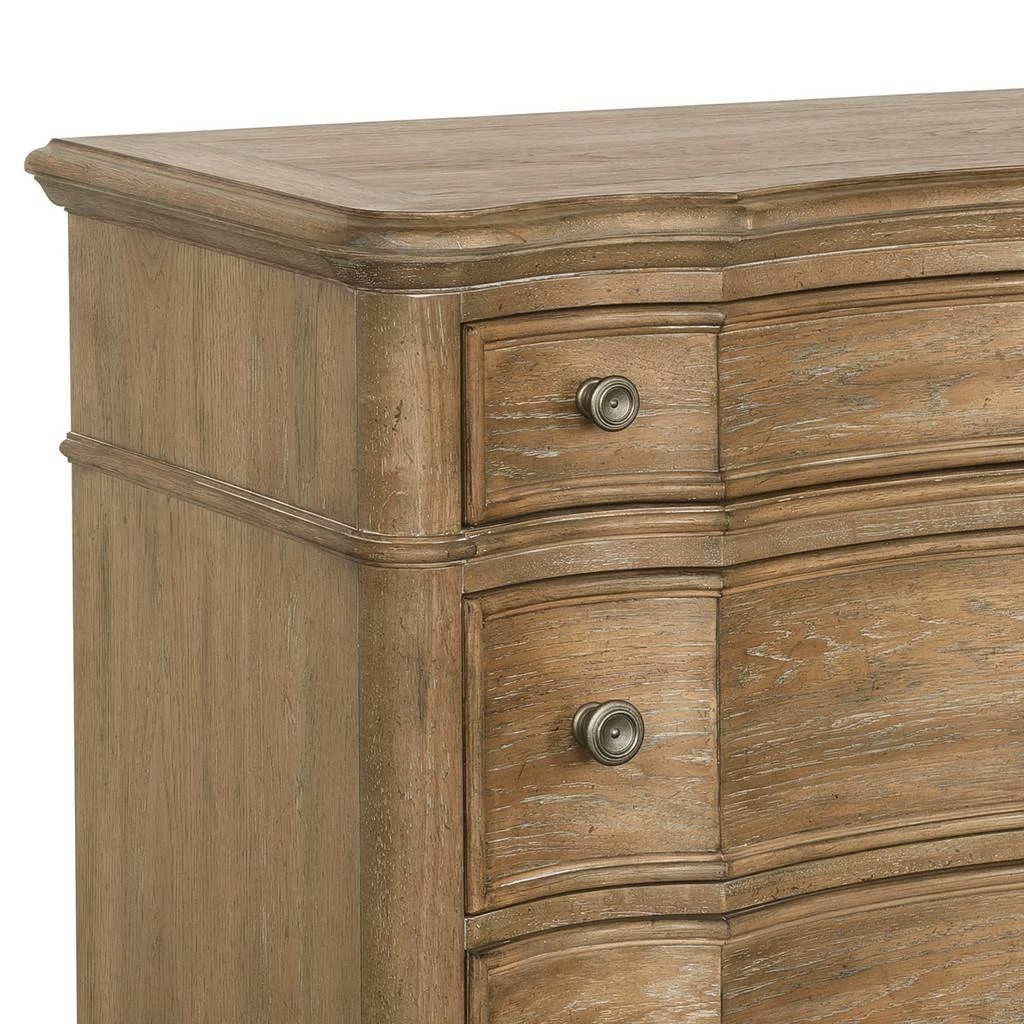 Bring the essence of an elegant home in the French countryside to your with Weston Hills Bachelor’s Chest. This piece features three drawers with felt-lined tops and cedar-lined bottoms, accented with understated pewter-finished knob hardware for an effortless look. White cerusing on cathedral hickory veneers enhances the grain and adds softness to the warm tones of the wood. Shapley fronts, rounded corners, and walnut inlays add distinction and character. Weston Hills –perfectly timeless, perfectly today, perfectly you.
