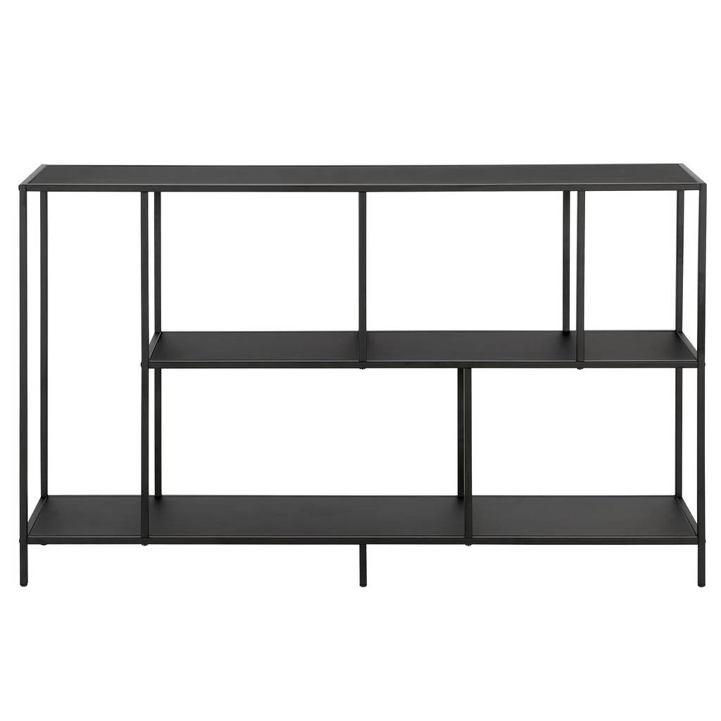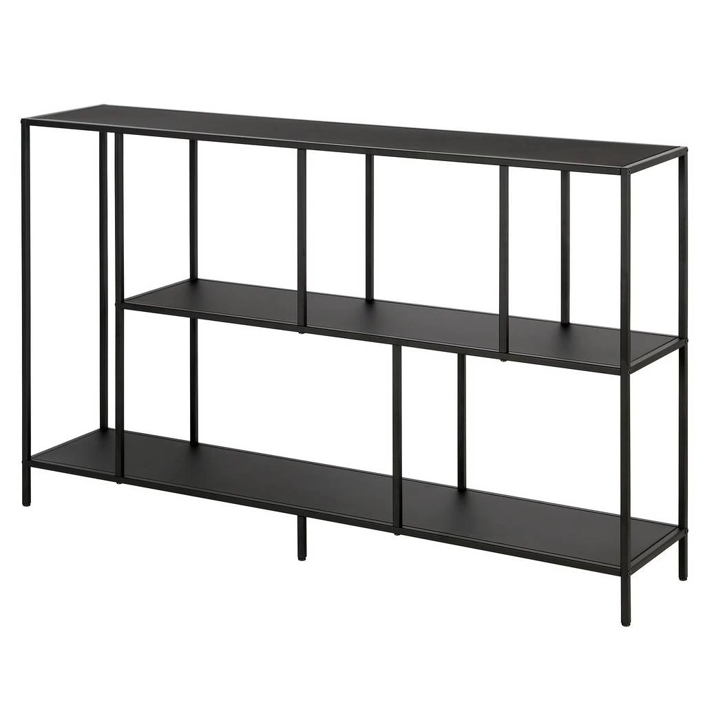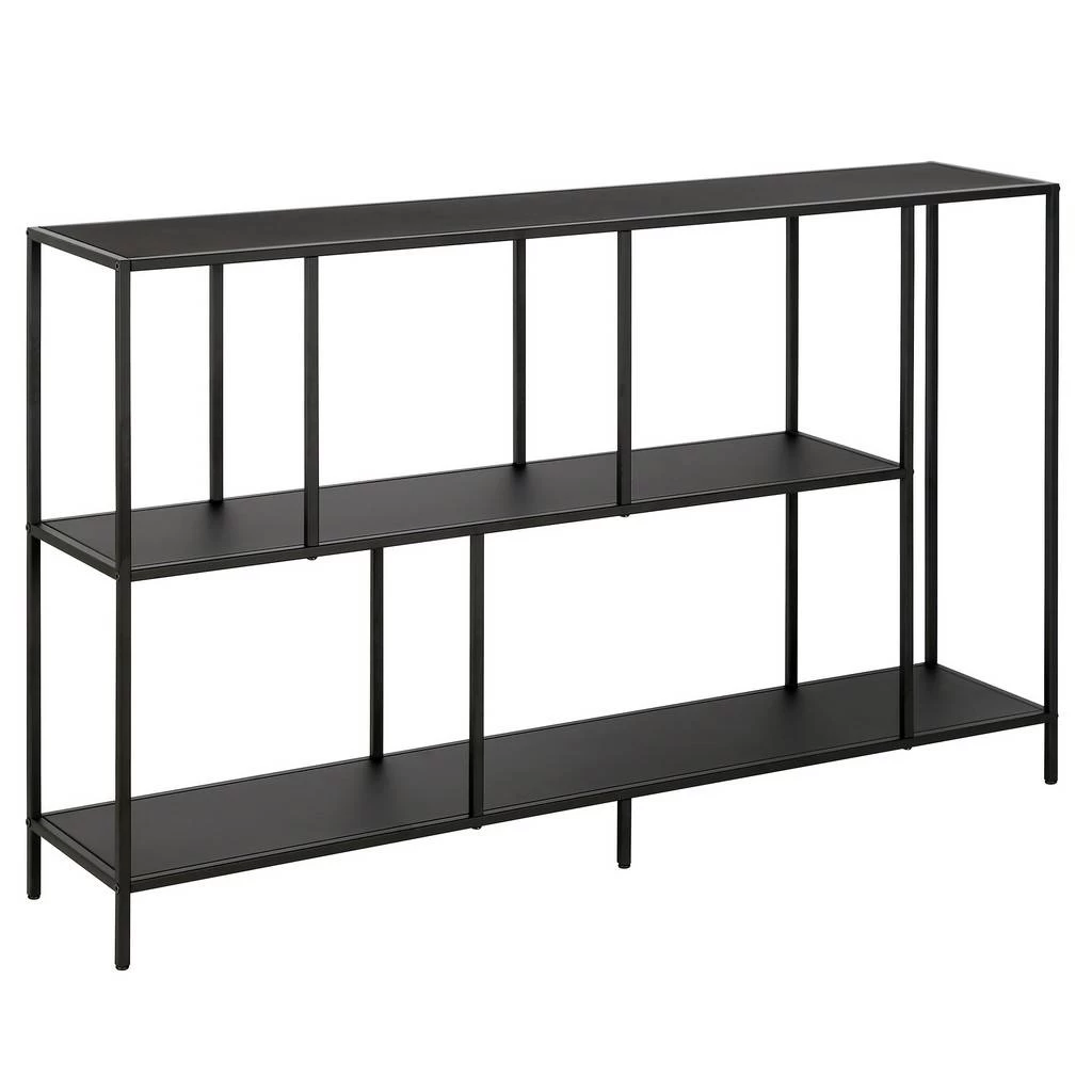 Clean, minimalist lines and sturdy tempered glass make this console table the perfect addition to your , or entryway. Proudly display knick-knacks, magazines and more on the durable steel top and staggered lower shelves. The streamlined look and neutral metallic finish pairs seamlessly with your existing color scheme and décor style.