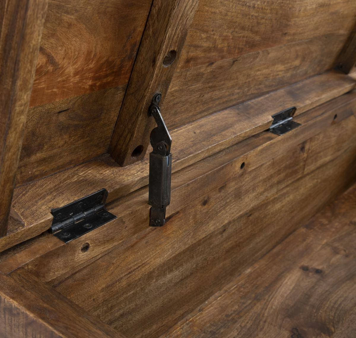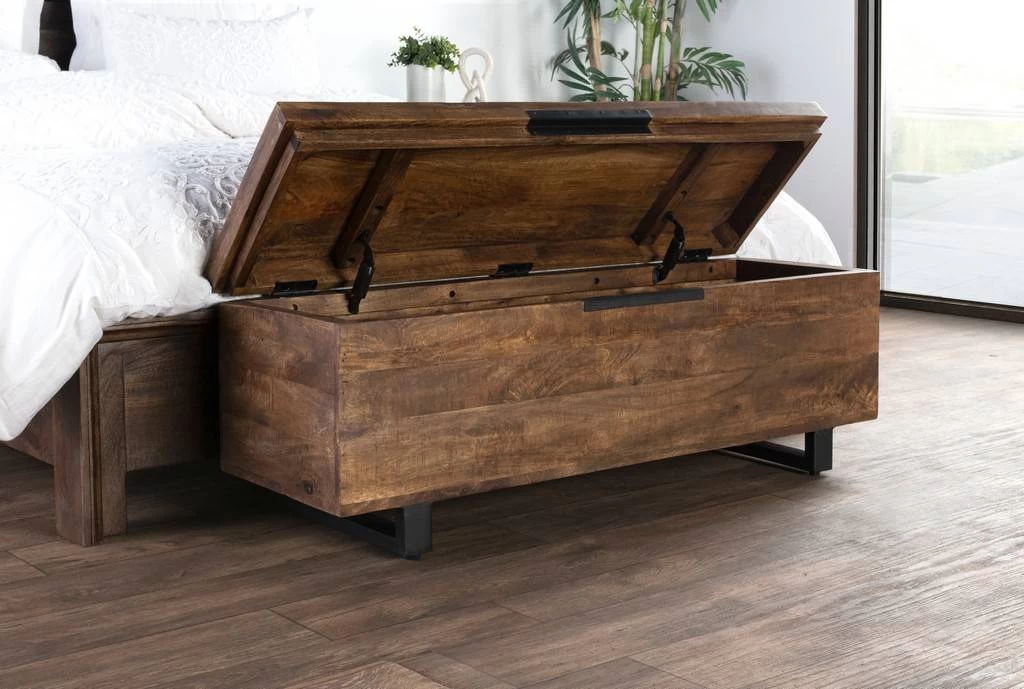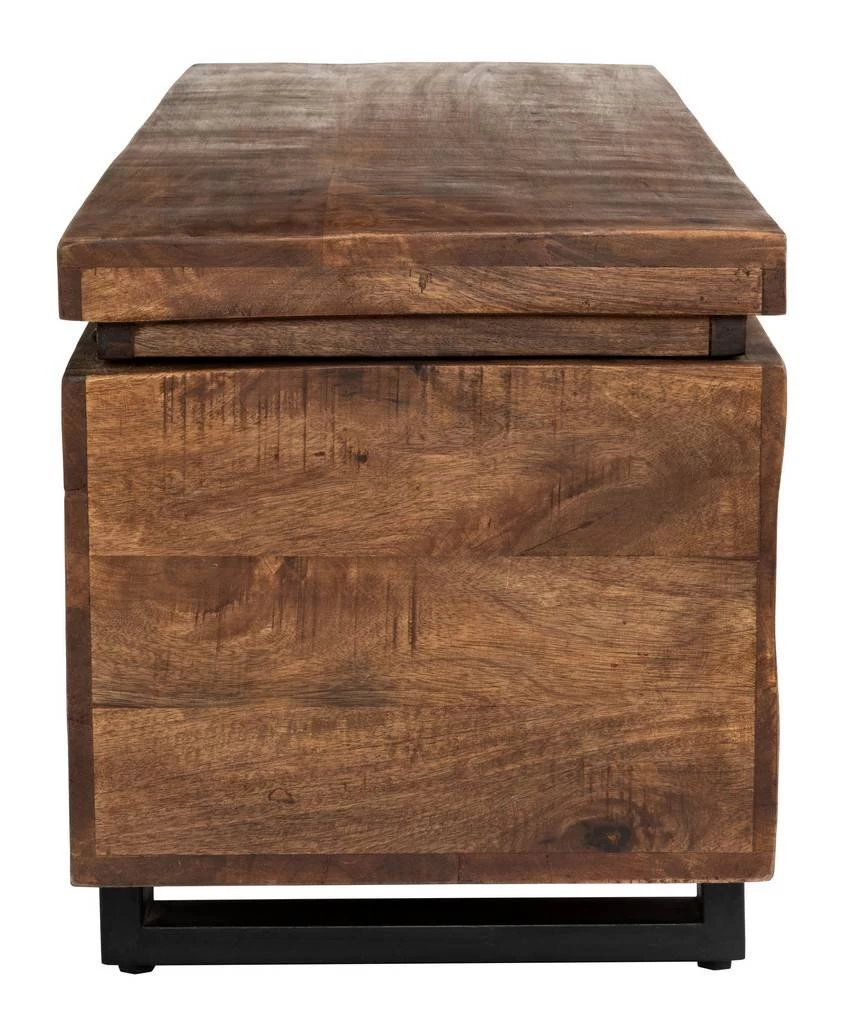 Hand-finished mango wood gives this storage trunk dynamic character by showcasing the unique grain patterns, knots, and variations inherent in the wood. Ideal for a home or office, the warm tone and minimalist design suit a variety of settings and styles from rustic to modern. Use this piece to organize and store family heirlooms, linens, or files and enjoy its well-crafted, handsome look for years to come.